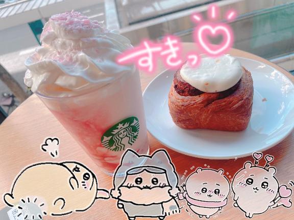 ななみです~^^ 桃と桜のフラペとシナモンロールー♡普…